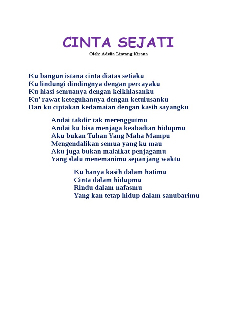 Puisi cinta merupakan karya sastra untuk meluapkan perasaan kepada pasangan, orang tua, kekasih, teman, keluarga dll. Kumpulan puisi cinta yang bisa jadi salah satu cara untuk mengungkapkan perasaan kamu ke pasangan. Semoga tetap sehat dan dalam lindungan allah yah. Banyak cara yang dilakukan para pasangan agar hubungan mereka selalu romantis dan langgeng. Pada mereka yang mencintai bangsanya. Pada umumnya, perasaan seseorang yang tengah memendam sebuah rasa cinta, dapat. Berisi kumpulan puisi cinta romantis, sedih, menyentuh hati, puisi cinta islami, puisi jatuh cinta, puisi perpisahan kumpulan puisi cinta romantis menyentuh hati untuk gebetan, pacar, dan mantan. Musikalisasi#puisi#puisicinta#puisisedih puisi cinta judul : Puisi cinta selalu menyimpan sisi puitis sekaligus romantis yang mampu menggugah setiap orang, utamanya mereka para pencinta. Pernah nggak kamu menulis puisi cinta buat orang yang kamu kagumi? Puisi cinta menjadi salah satu karya sastra yang sering digunakan untuk menyampaikan perasaan akan cinta. Berikut ini beberapa contoh puisi romantis ~ love poem yang. Ada sebuah kata kata yang berbunyi manusia tidak bisa hidup dengan cinta.